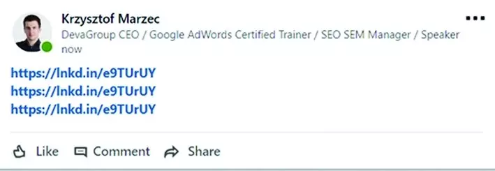 Rys. 3. LinkedIn automatycznie skróci zbyt długie linki podczas dodawania