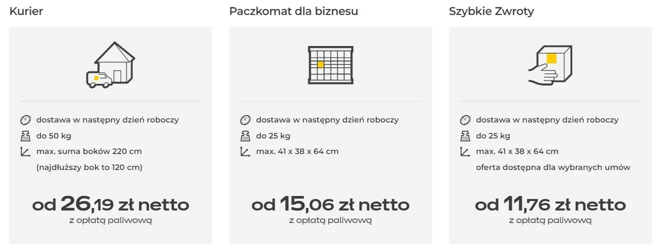 Oferty biznesowe InPost, czyli Paczkomat®, Kurier i Szybkie Zwroty to kompletny zestaw usług, które wspierają sklepy online niezależnie od skali sprzedaży. Dzięki nim sprzedawcy mogą skoncentrować się na rozwoju, a klienci zyskują pewność, że ich zamówienia i zwroty zostaną obsłużone szybko i wygodnie.